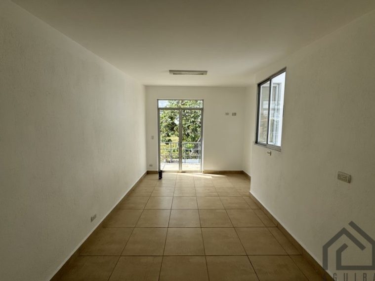 En segunda planta tiene una pequeña área de oficina, hay con 2 habitaciones, la principal con walk-in closet y baño, tiene balcón, y la habitación secundaria con clóset pequeño y tiene con baño completo