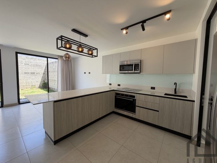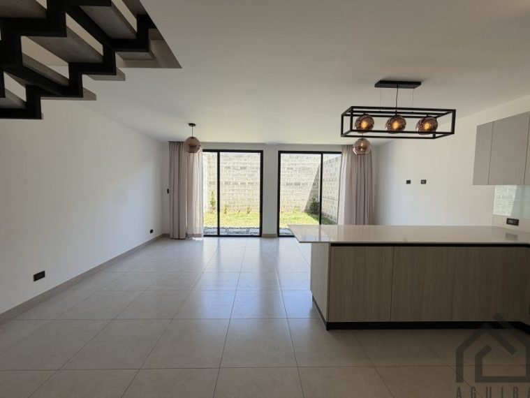 Casa totalmente nuevo con 3 habitaciones ( principal con walk in closet y baño completo/ balcón ) 2,5 baños, sala comedor, hermosa cocina con desayunador y muebles ( equipada ), cuarto de pilas , jardín y parqueo para 2 vehículos bajo techo