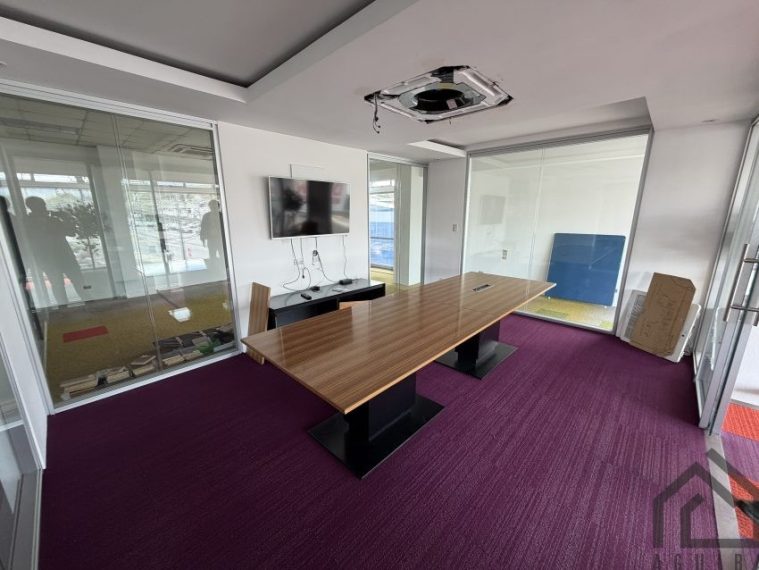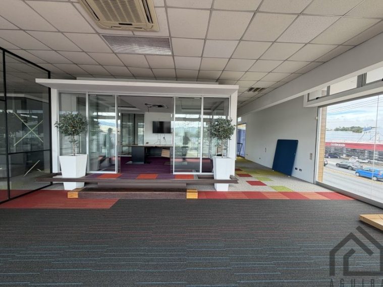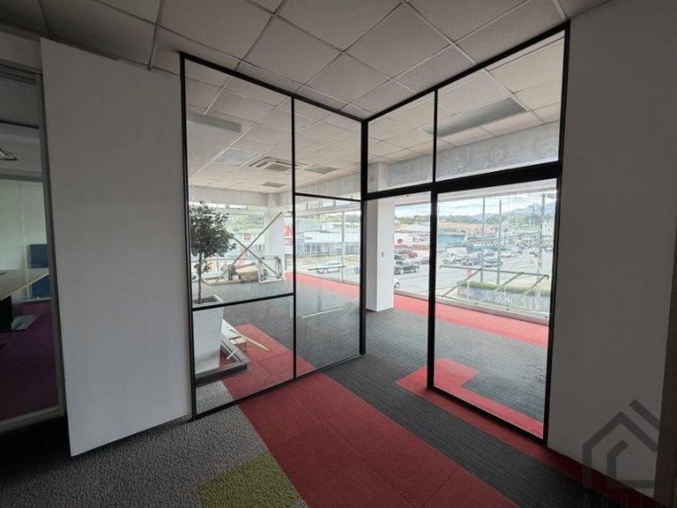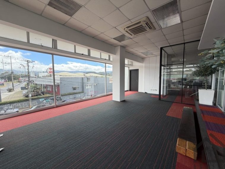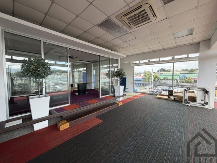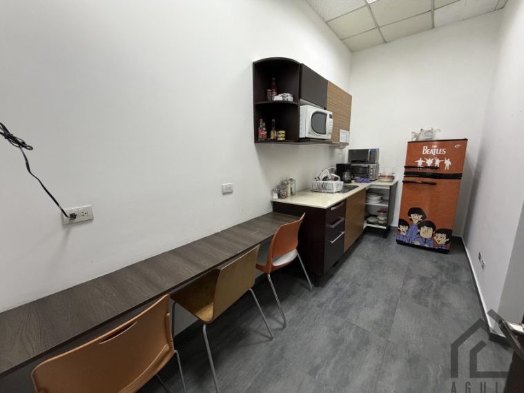 Oficina de 135,80m2 en segundo piso, cuenta con una amplia zona de trabajo, cuenta con sala de juntas, A/C, baños, área de comedor y parqueo para 4 vehículos